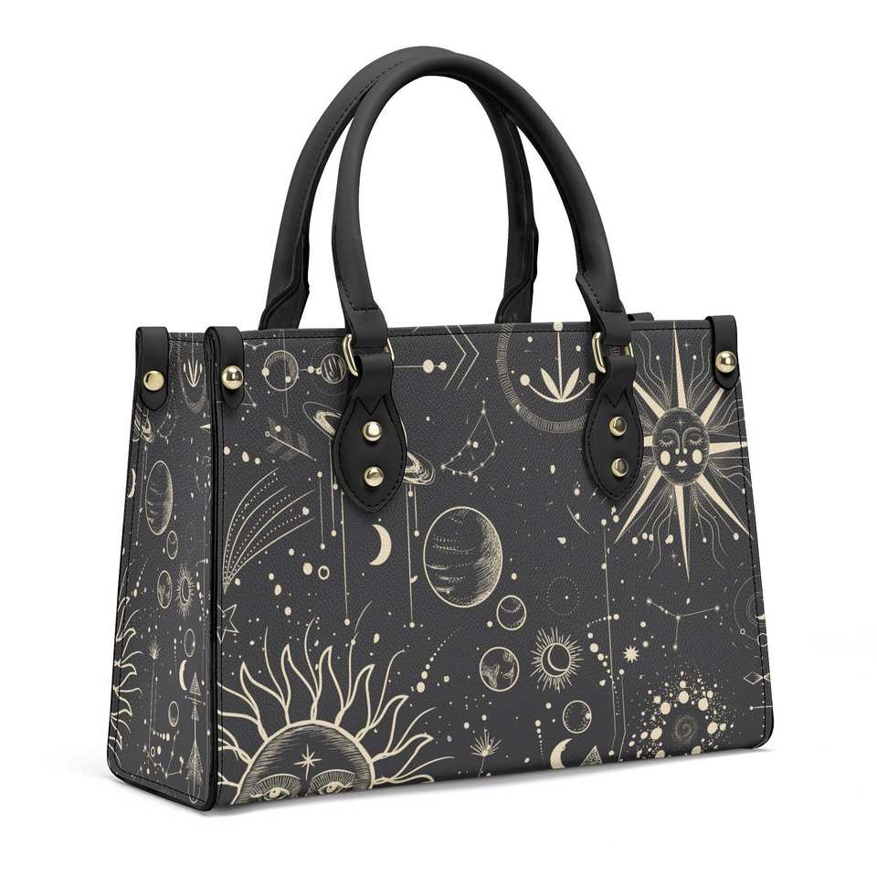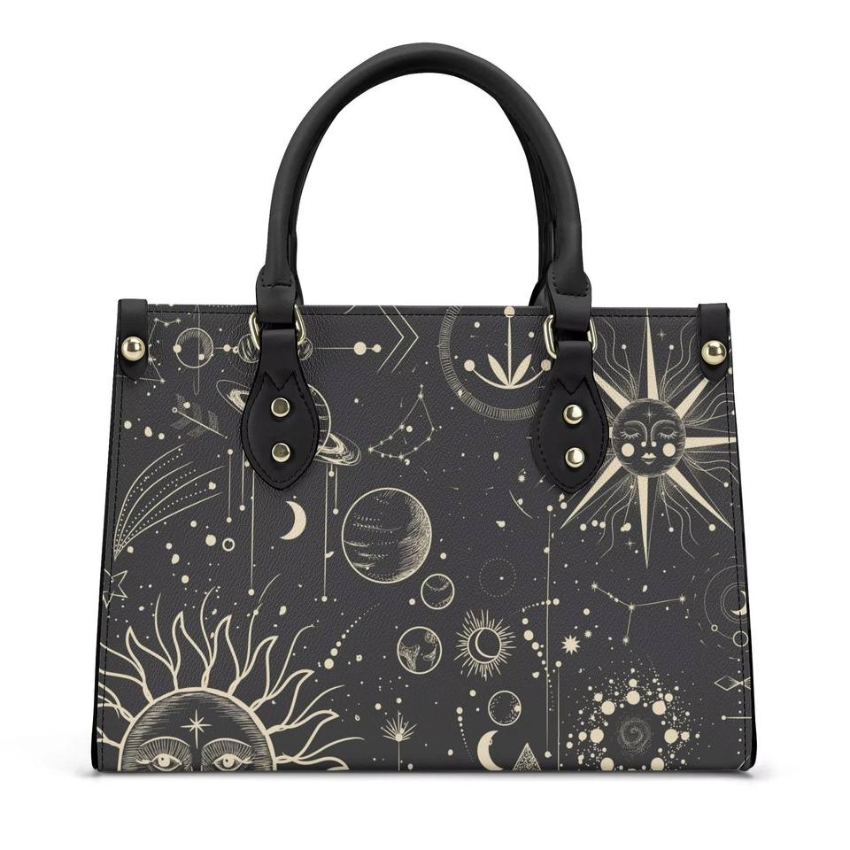 Celestial Sun and Moon Mystical Boho PU Leather Handbag for Women Dropship POD Luxury Lady Tote Bag