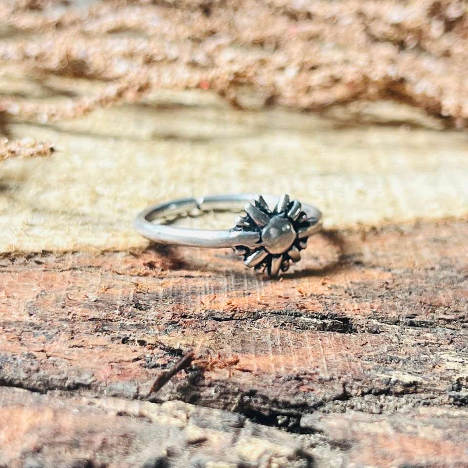 แหวนลายพระอาทิตย์สไตล์โบฮีเมียน แหวนทองเหลืองสำหรับผู้หญิง ดีไซน์พระอาทิตย์สีเงินออกซิไดซ์ แหวนมินิมอลลายพระอาทิตย์ ขายส่ง