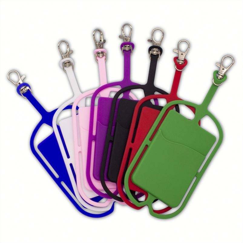 สายคล้องโทรศัพท์มือถือพร้อมช่องใส่บัตรสายคล้องคอซิลิโคนปรับได้เป็นมิตรกับสิ่งแวดล้อมด้ามจับไม้รองรับสมาร์ทโฟนส่วนใหญ่