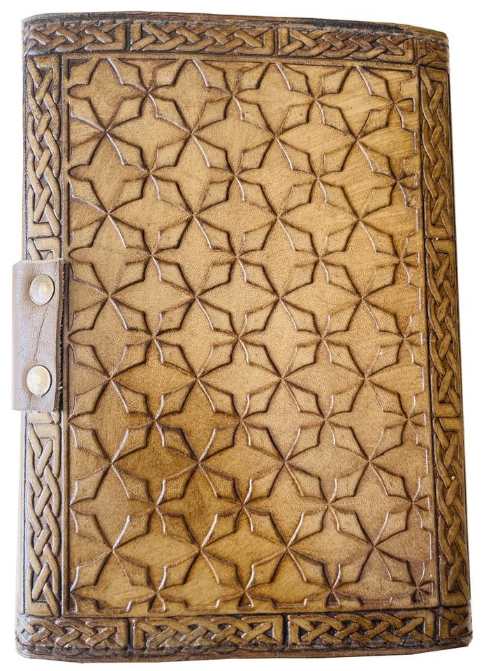 สมุดงานทำมือลายนูนลายทางเซลติกสลักลายนูนด้วยหนังแท้หินสีฟ้าพร้อมสมุดหน้าขอบและล็อกทองเหลืองโบราณ