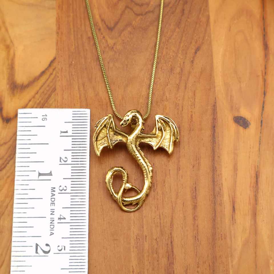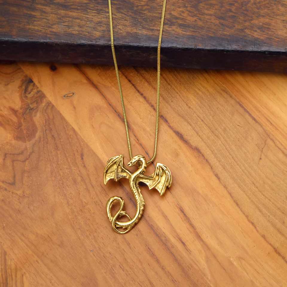 สร้อยคอจี้ทองเหลืองรูปมังกรเซลติกพร้อมสายโซ่ สร้อยคอจี้มังกรจีนโบราณสไตล์โอลิเวีย