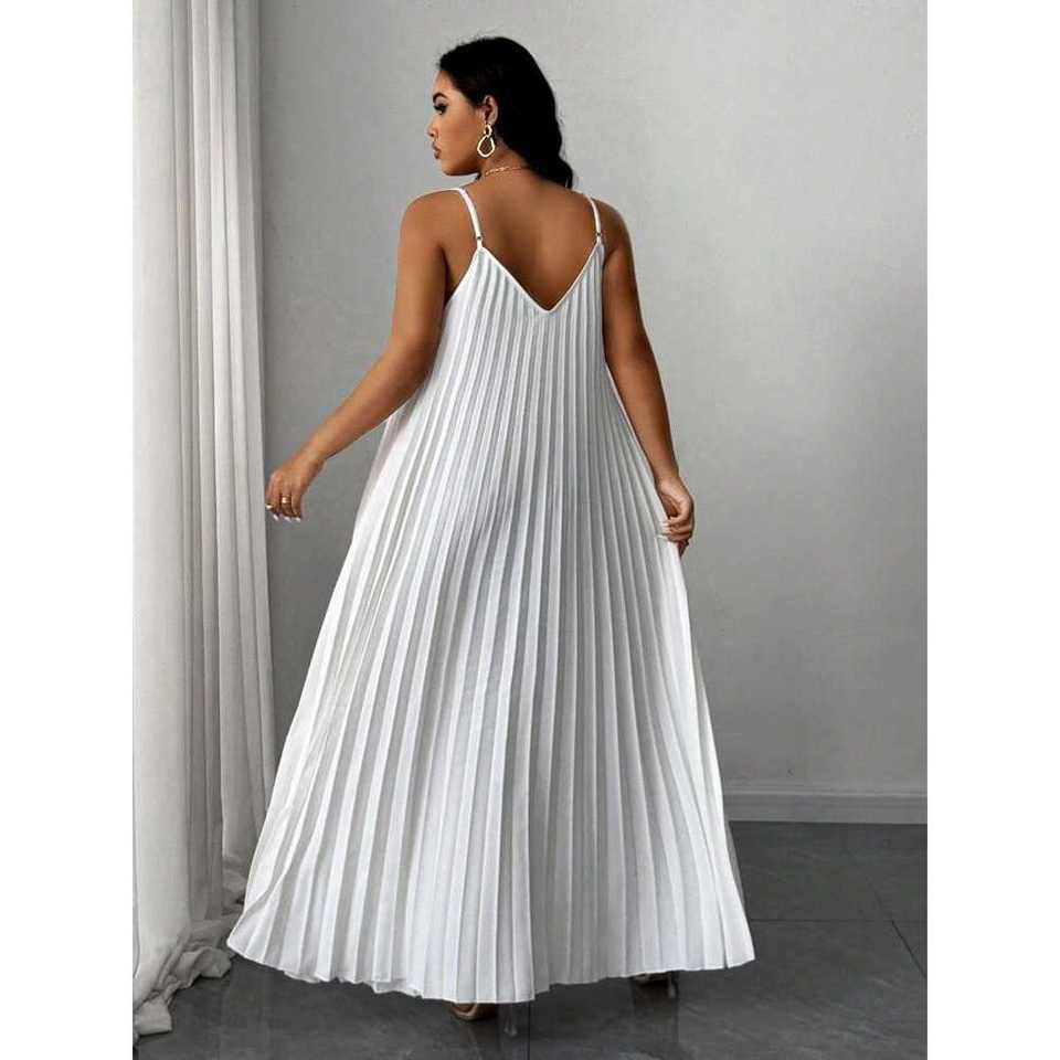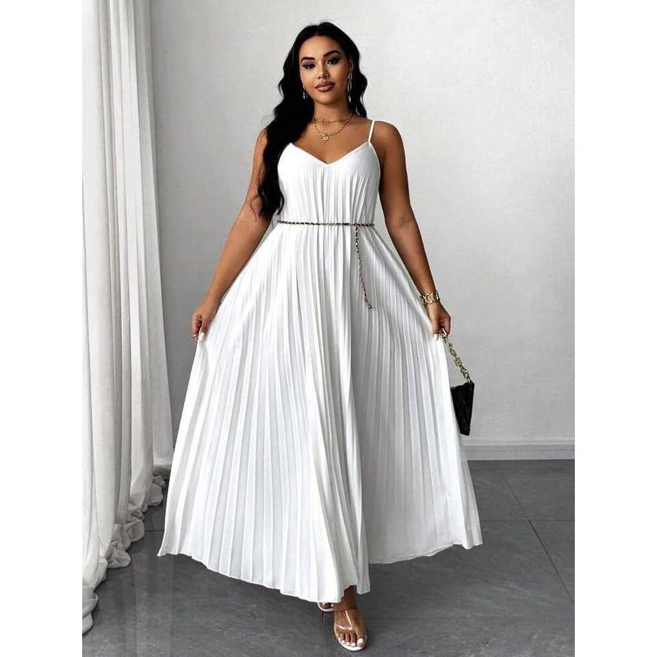 Celure Women's Elegant Romantic White Pleated Dress Plus Size Holiday Prom Dress