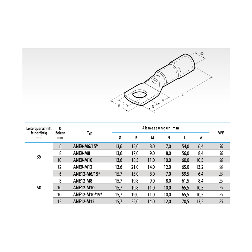 สายเคเบิลไนลอนแบบแยกได้ ANE9-M10 35mm ² M10