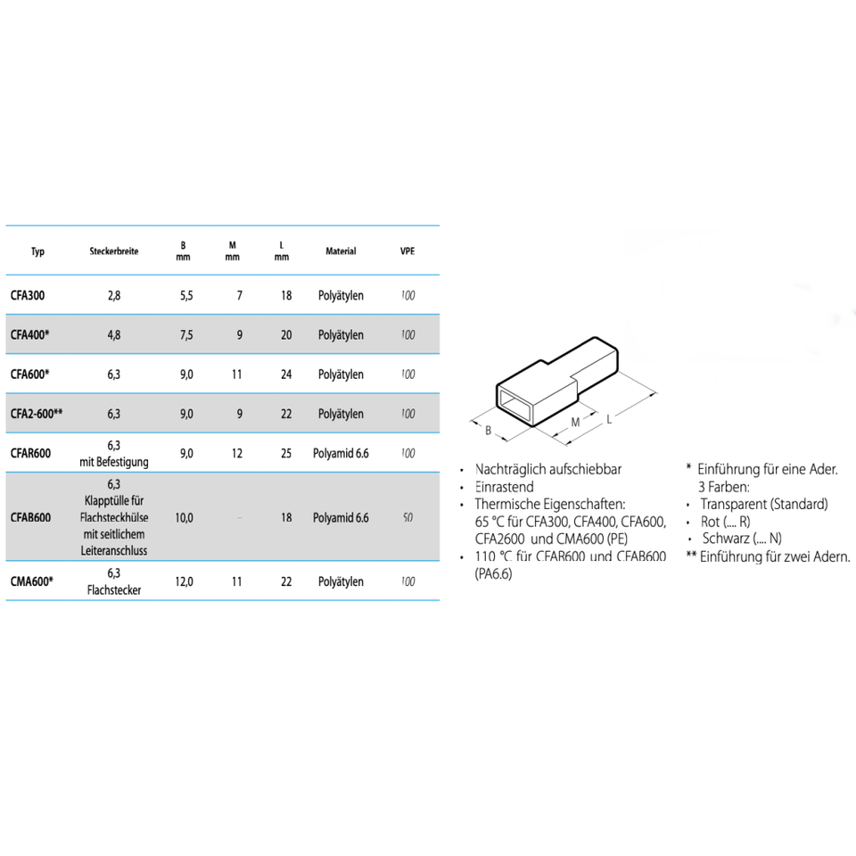 Cembre CFA2600ฉนวนกันความร้อนตามธรรมชาติแพ็ค100ชิ้นสำหรับภาชนะแบนขนาด6.3