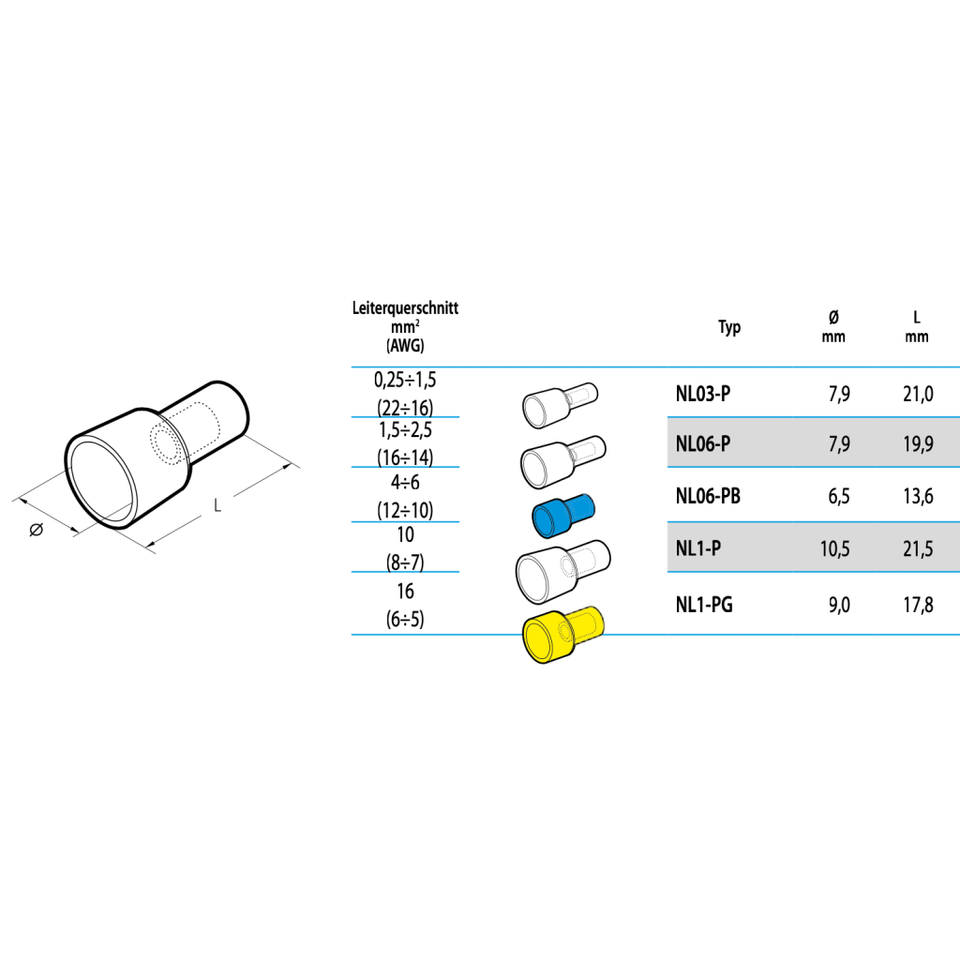 ตัวเชื่อมต่อปลาย NL06-P cembre 1.5-2.5mm ² ตามธรรมชาติ