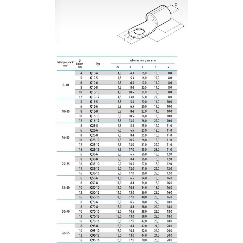 ตัวยึดสายเคเบิล Q120-16แบบยึดตาม M16 DIN 46234 120mm ²