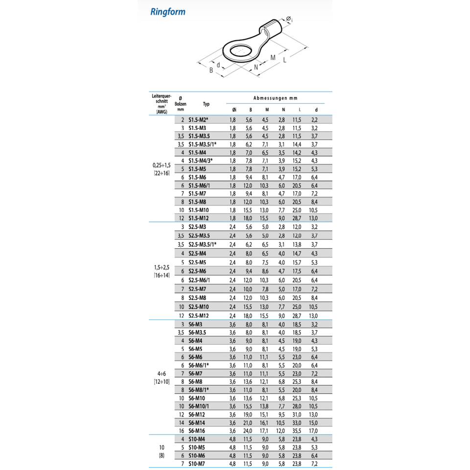 Cembre S2,5-M3 crimp cable lug ring type M3 1,5-2,5mm²