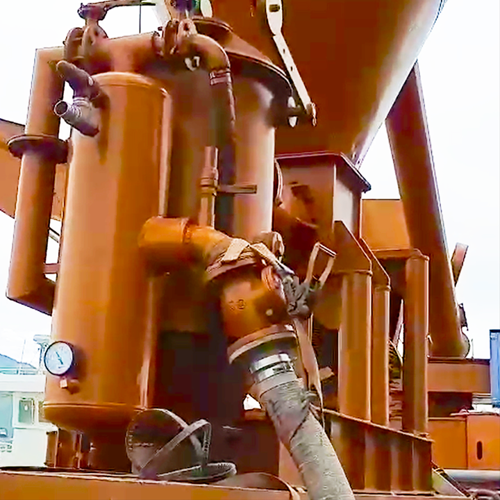 ระบบขนถ่ายปูนซีเมนต์สำหรับการรวบรวม/ขนส่งวัสดุจากเรือไปยังรถบรรทุกถัง/ไซโล/คลังสินค้า