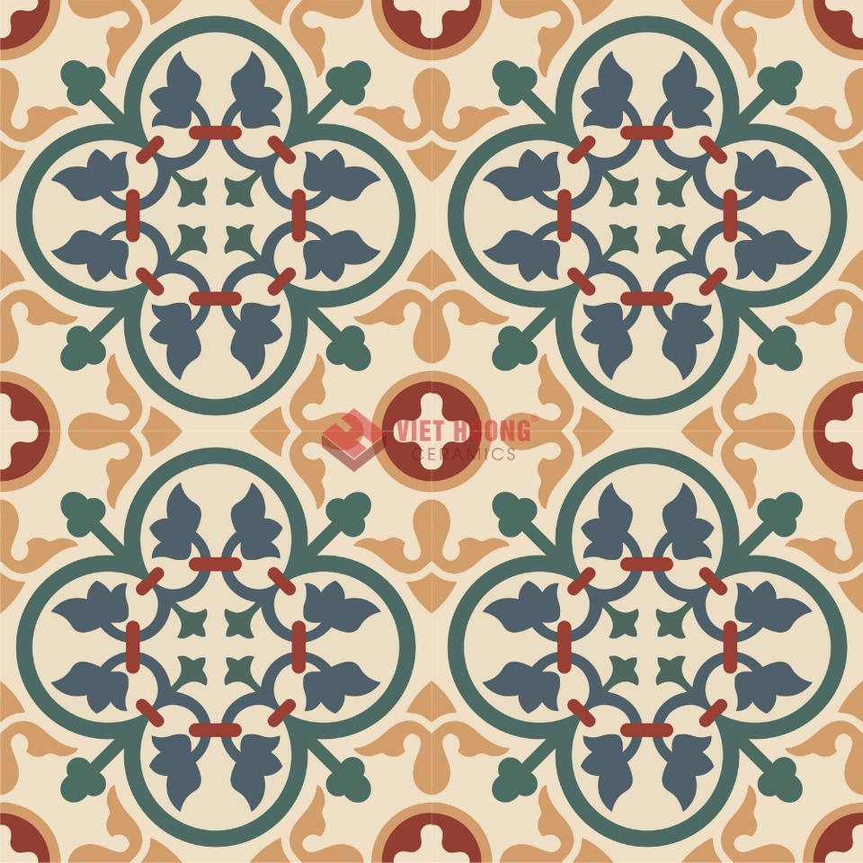 กระเบื้องซีเมนต์ขนาด 200x200 มม. ให้ความรู้สึกหรูหราและประณีตด้วยดีไซน์ที่ลงลายด้วยมืออย่างงดงาม