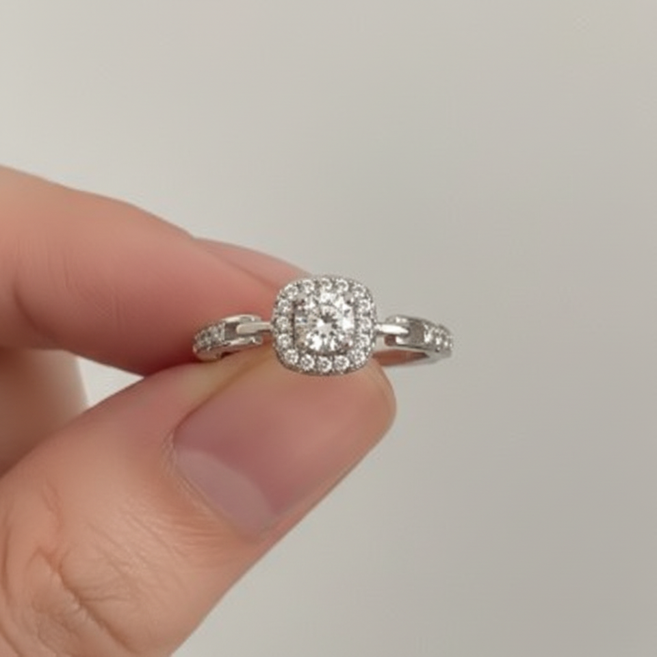 Cenhao แหวนโซ่ประดับเพชรสี่เหลี่ยมของผู้หญิงพร้อมเพทายเป็นประกายแหวนลูกบาศก์ดีไซน์แบบสะดุดตา