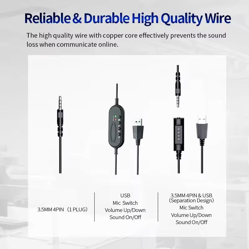 หูฟังแบบครอบศีรษะพร้อมไมโครโฟน รุ่น SY490 เชื่อมต่อผ่าน USB สำหรับโทรศัพท์และฟังเพลง (แบบมีสาย)