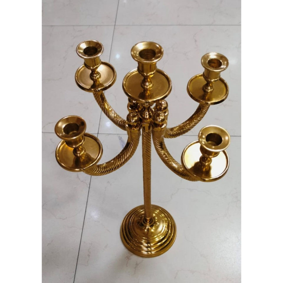 เชิงเทียนโลหะสีทองตกแต่งโต๊ะแต่งงานเชิงเทียนที่ไม่ซ้ำกันและขวดเชิงเทียนคริสตัล5แขน