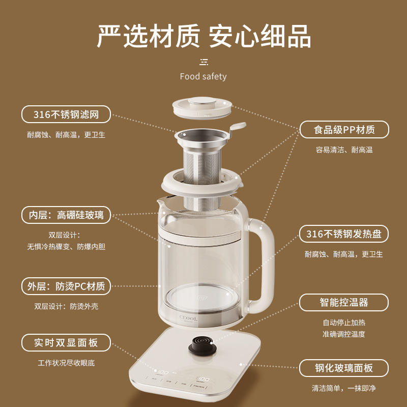 กาต้มน้ำไฟฟ้า Ceool Health ขนาด 1.5 ลิตร ควบคุมอุณหภูมิได้ ปิดอัตโนมัติ สำหรับชงชา