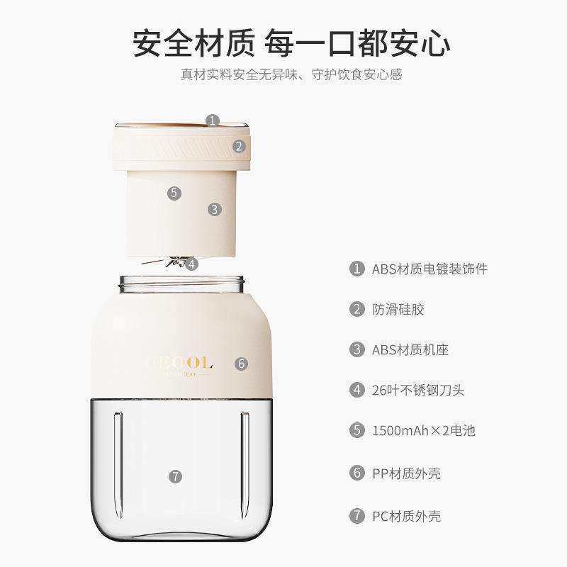 เครื่องคั้นน้ำผลไม้พกพา Ceool 700 มล. ใช้แบตเตอรี่อเนกประสงค์ พร้อมฝาปิดสำหรับดื่มโดยตรง