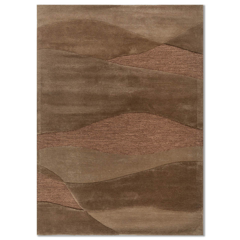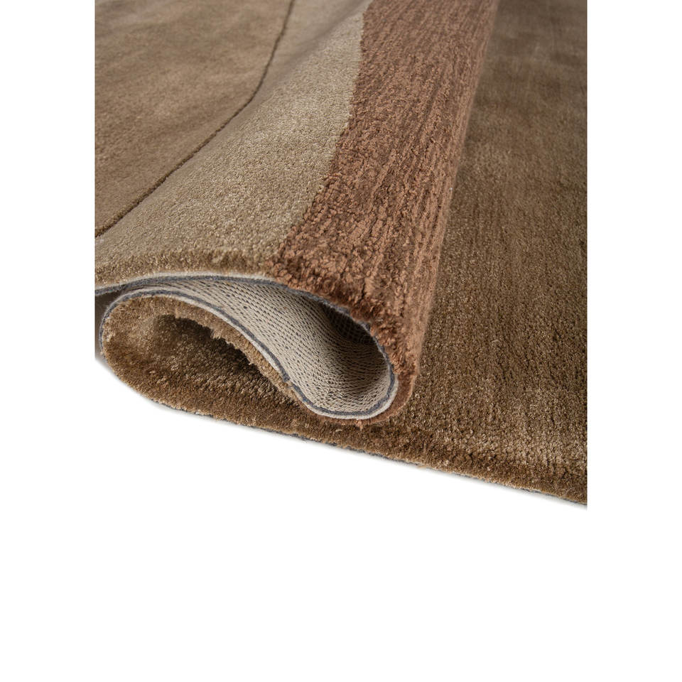 พรมขนสัตว์และใยวิสโคสทอมือสีเบจและสีน้ำตาล รุ่น TNQ-3300 ลายแบบนามธรรม สำหรับตกแต่งห้องนั่งเล่น พรมทรงสี่เหลี่ยมผืนผ้า