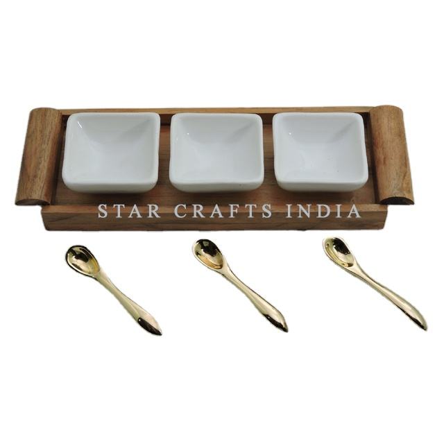 ชุดชามเซรามิก3ชิ้น & ถาดไม้สำหรับอาหารเย็นชุดชาม3ชิ้นและชุดช้อน3ชิ้น
