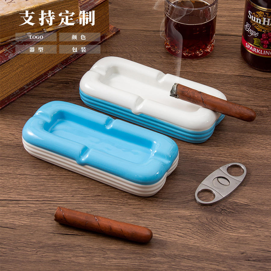 ที่เขี่ยบุหรี่เซรามิกทรงสี่เหลี่ยม สีขาวและสีน้ำเงิน สำหรับใส่ซิการ์ ใช้ในบ้าน สำนักงาน หรือเป็นของขวัญ หมายเลขสินค้า DD1702