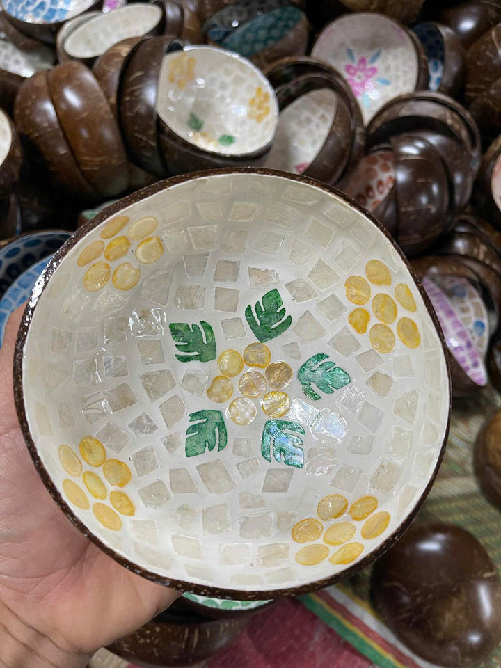 ชามเปลือกมะพร้าว งานแฮนด์เมด ขัดเงา | ชุดภาชนะใส่อาหารแบบมินิมอลรักษ์โลกสำหรับร้านอาหาร คาเฟ่ และบ้าน