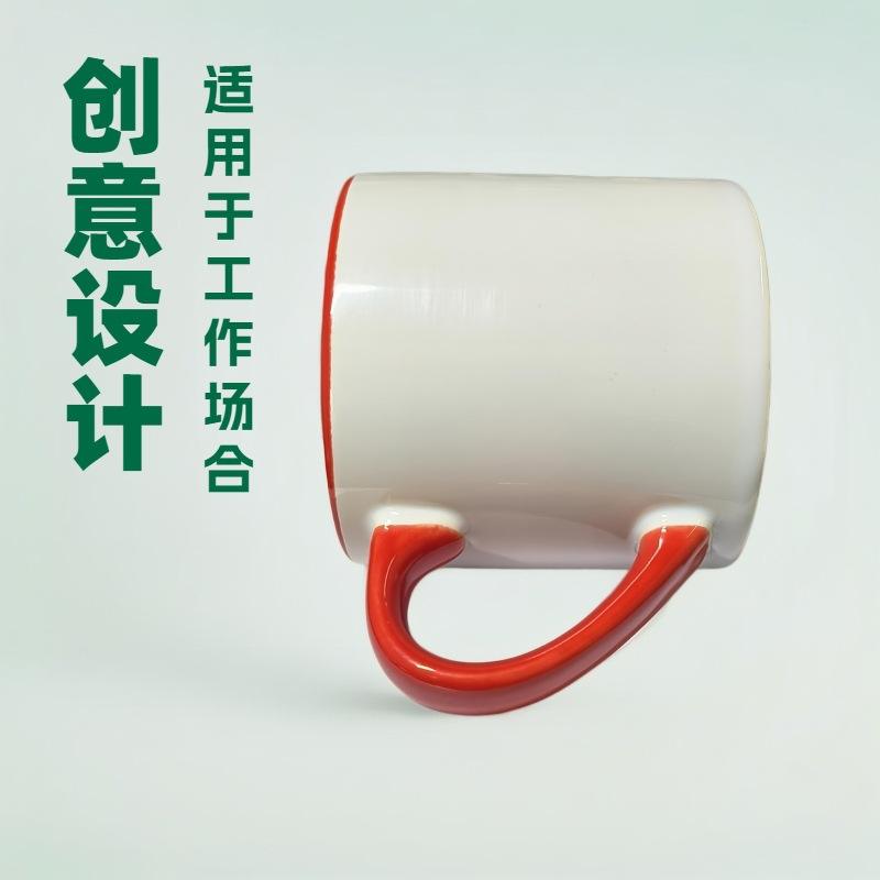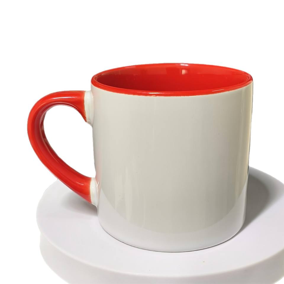 แก้วกาแฟเซรามิก 15 ออนซ์ หูจับสีแดง สีพื้น มีหูจับ แก้วเดี่ยว สำหรับแจกเป็นของขวัญ