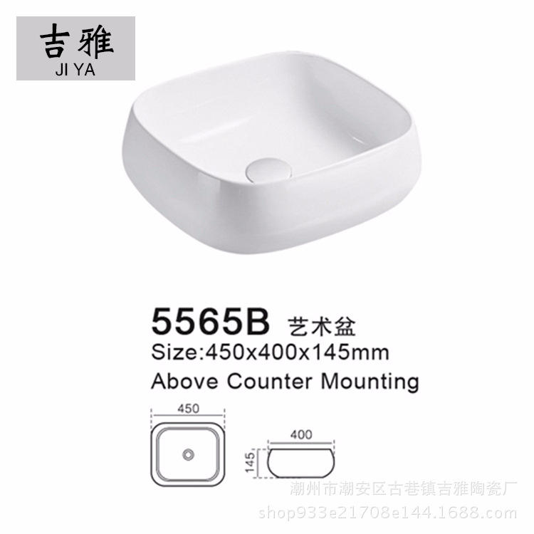 อ่างล้างหน้าเซรามิกแบบตั้งเดี่ยว5565B อ่างล้างหน้าคุณภาพพรีเมี่ยมขนาด450x400x145มม. ไม่มีรู