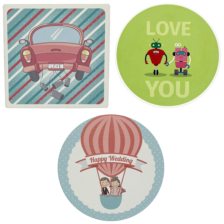 Ceramic Cup Coaster Square Wedding for Newlywed Custom Souvenir 110mm Diameter 7mm Thick
