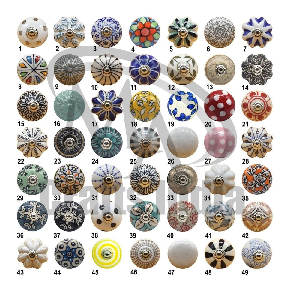 ลูกบิดประตูเซรามิกคละตู้ดึงลิ้นชักลูกบิดสำหรับห้องนอนวินเทจหลายสีทำด้วยมือประตูเซรามิก