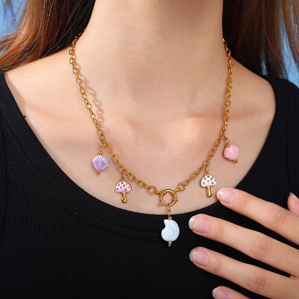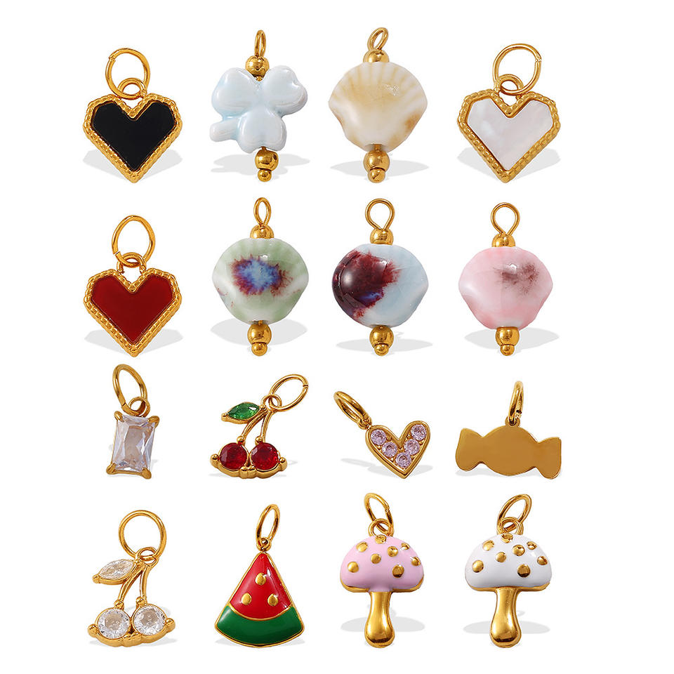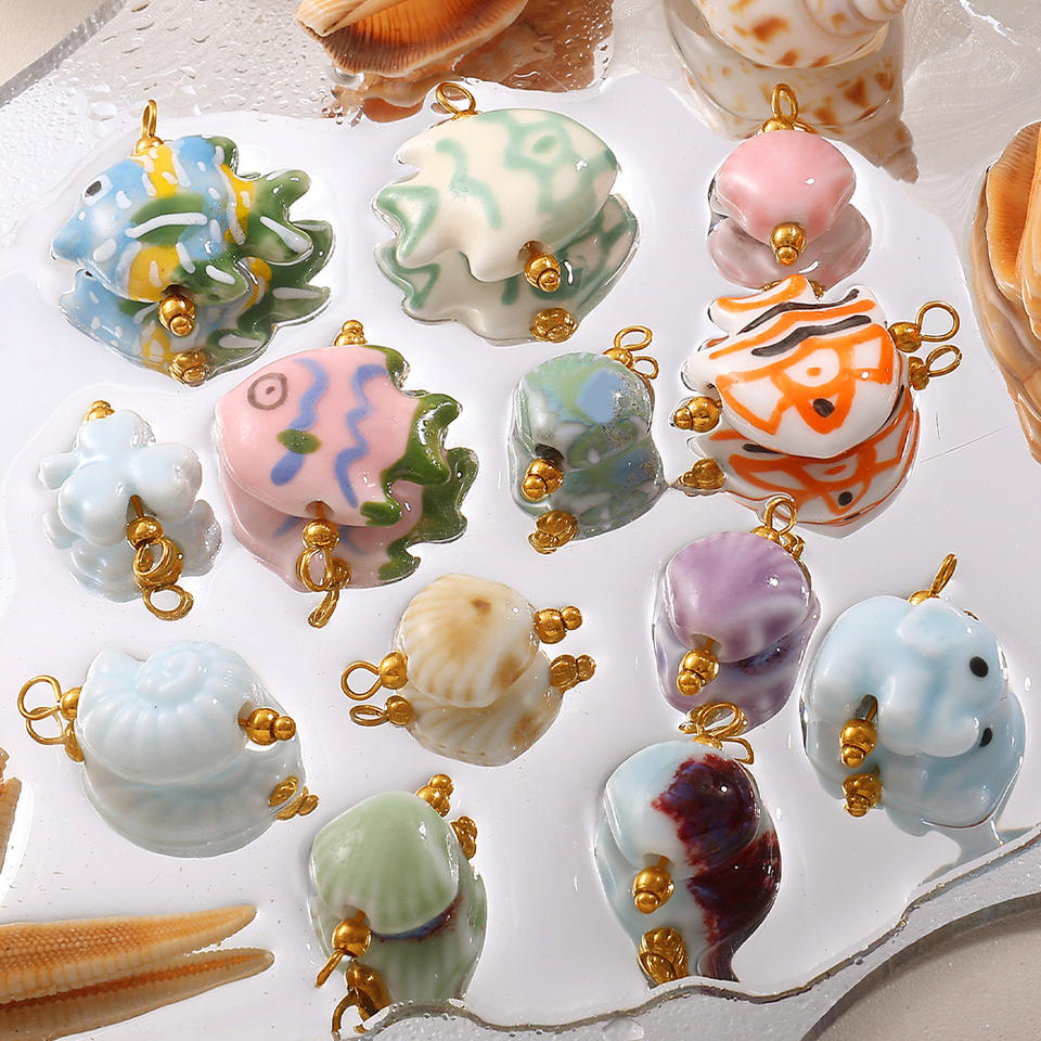 จี้รูปปลาเซรามิก สแตนเลสสตีล ชุบทอง 18K จี้ห้อยคอธีมพิเศษ อุปกรณ์ตกแต่งเครื่องประดับ DIY สำหรับทุกเพศ สไตล์วันหยุดพักผ่อนริมชายหาด