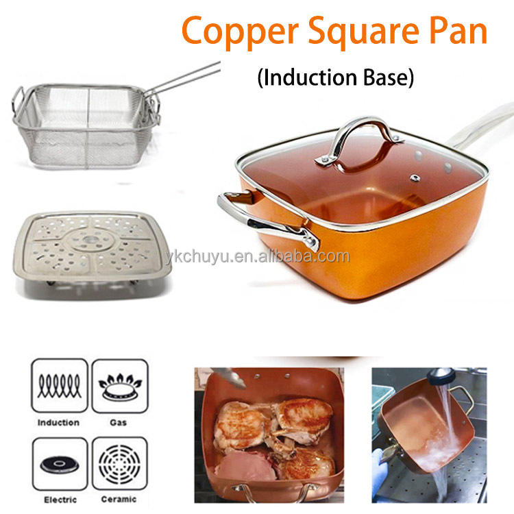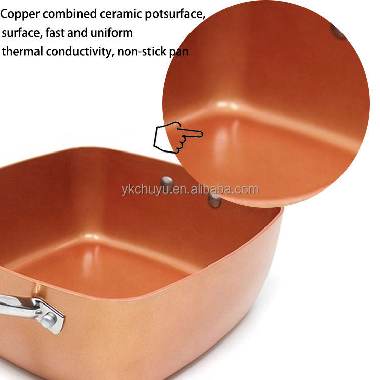 กระทะเซรามิกเคลือบสารกันติด คุณภาพสูง 4 ชิ้น ทำจากอะลูมิเนียมอัดขึ้นรูป ใช้กับเตาแม่เหล็กไฟฟ้าได้ ขนาดใหญ่ รูปทรงสี่เหลี่ยม ลึก