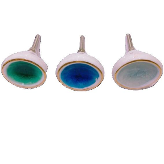 ลูกบิดเซรามิกชุด3ที่มีคุณภาพสูงมือวาดหลายสีการออกแบบผสมรอบรูปร่างทองเหลืองที่เหมาะสมแฟนซีลูกบิดประตูเซรามิก