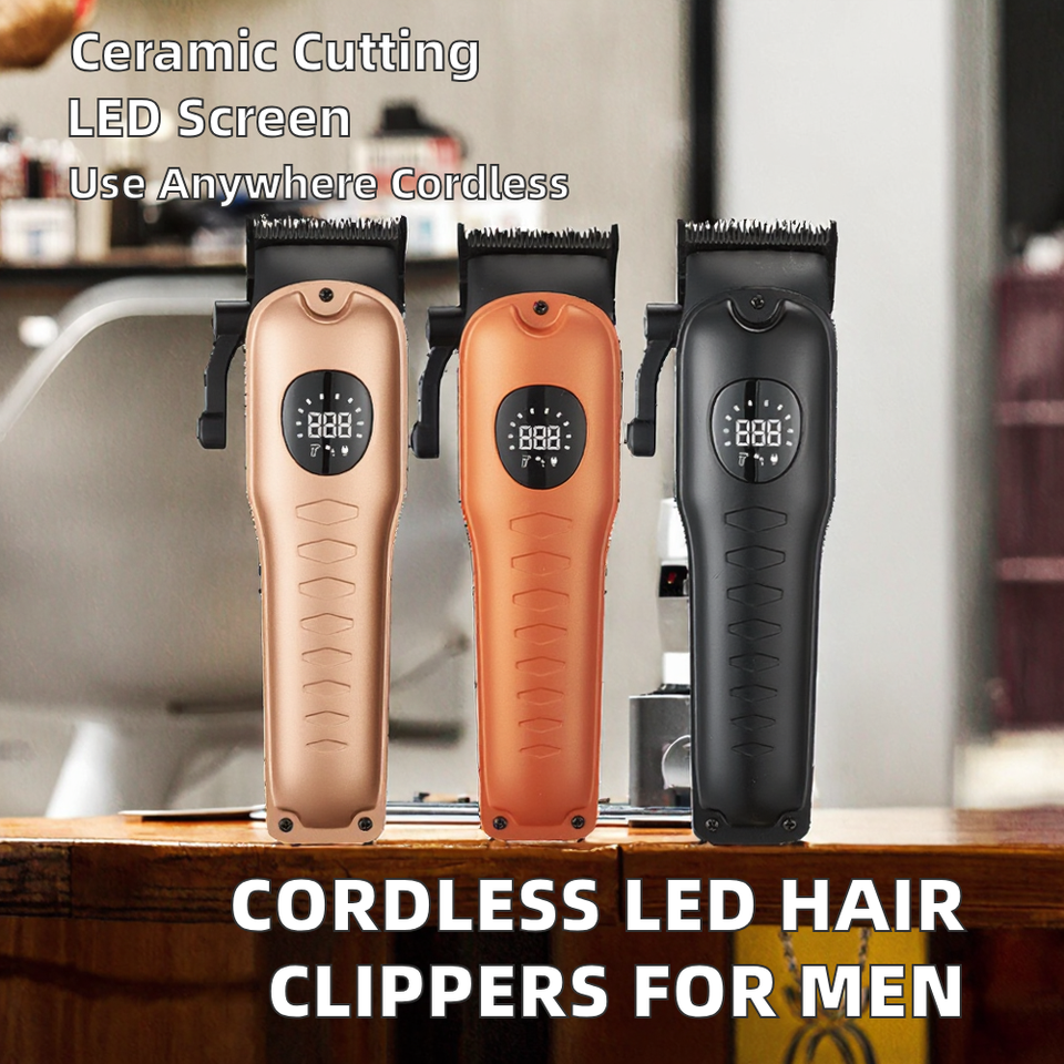 เครื่องตัดผมไร้สายแบบมืออาชีพ พร้อมจอ LED เซรามิก ชาร์จผ่าน USB ใช้งานได้นาน เหมาะสำหรับร้านตัดผมและโรงแรม
