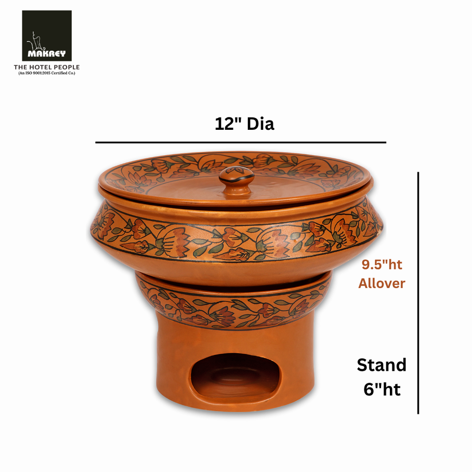 ชุดชามเซรามิกเคลือบพร้อมภาพวาดดินเผาจานบุฟเฟ่ต์แบบดั้งเดิมพร้อมฝาปิดและขาตั้งเหล็กสำหรับใช้ในงานเลี้ยงและการจัดเลี้ยง