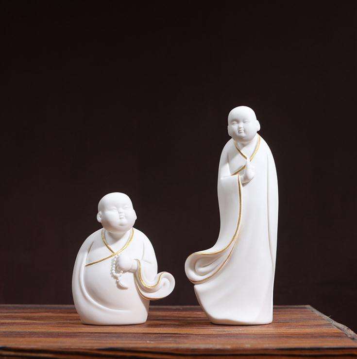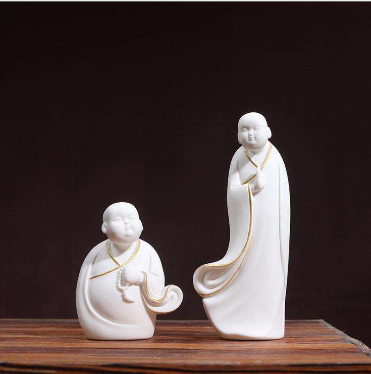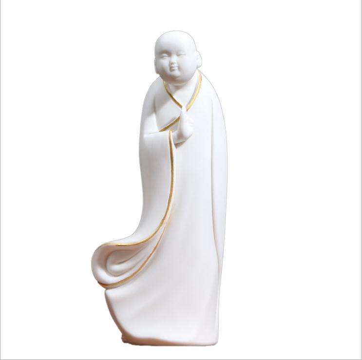รูปพระสงฆ์เซรามิก งานฝีมือสร้างสรรค์ พอร์ซเลนสีขาว ทาสีพระสงฆ์หนุ่ม ของตกแต่งสไตล์เซน พระนักบวชตัวน้อยน่ารัก