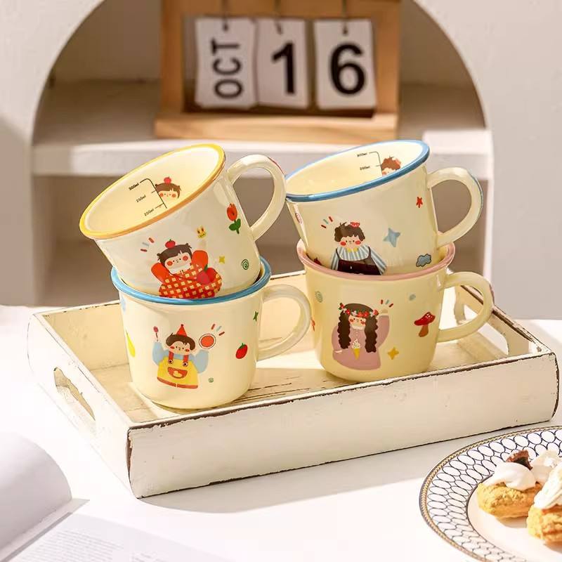 แก้วเซรามิคลายการ์ตูนเด็กผู้หญิง มีหูจับ สำหรับเด็กและนักเรียน ฤดูใบไม้ผลิ 2025 แก้วกลับไปโรงเรียน สีเหลือง ชมพู ฟ้า
