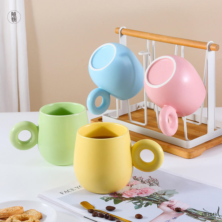 แก้วเซรามิคสีชมพูด้าน 430 มล. แก้วกาแฟทรงกว้างสำหรับเป็นของขวัญ DB1843