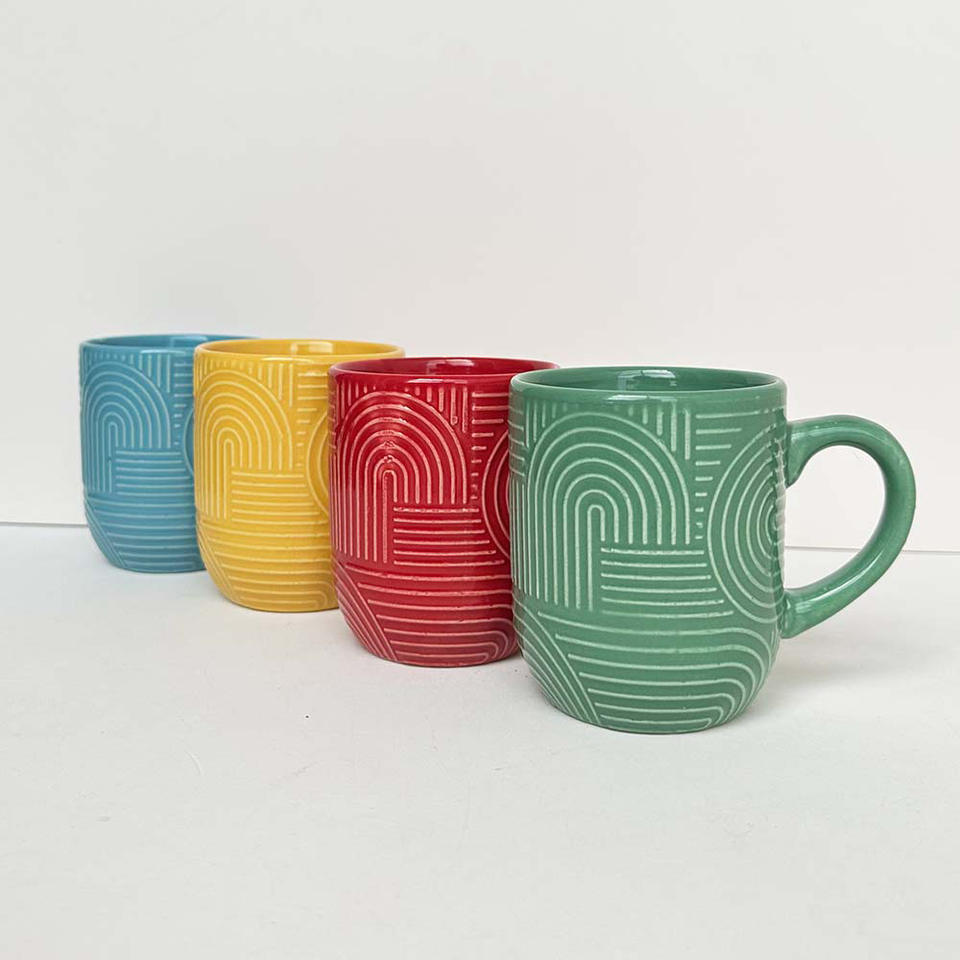 แก้วเซรามิกสีแบบกำหนดเองพร้อมที่จับของขวัญทางธุรกิจถ้วยเดียวต้นกำเนิด Zibo