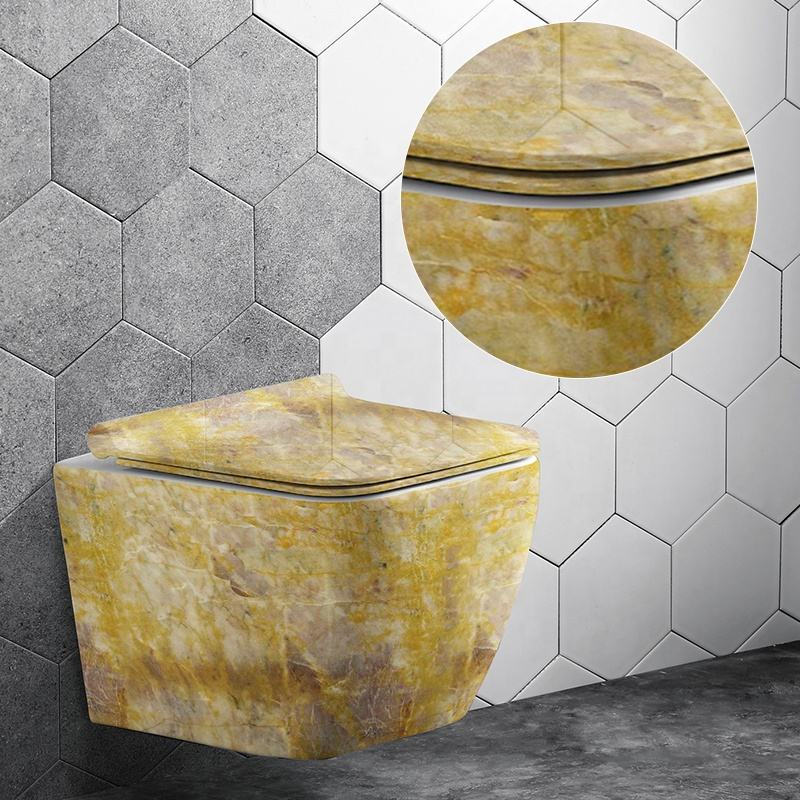 โถสุขภัณฑ์เซรามิกหินอ่อนแบบติดผนังพร้อมฝารองนั่งแบบปิดนุ่มนวล