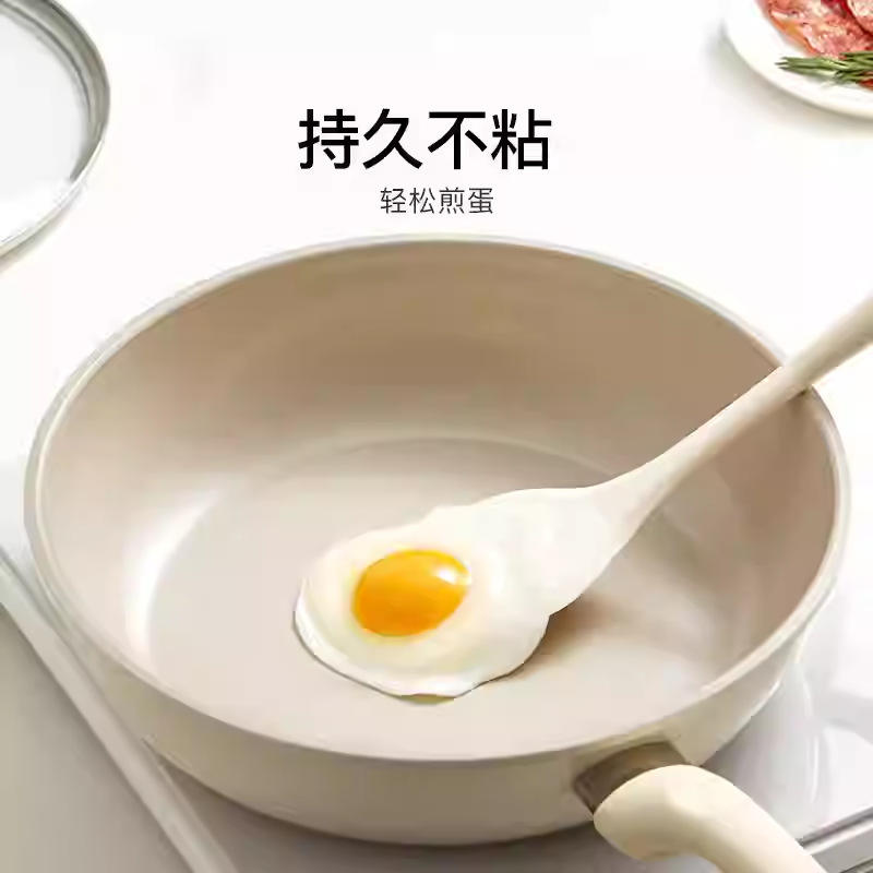 กระทะเซรามิก 20 ซม. ก้นแบน ไม่ติดกระทะ ใช้ได้กับเตาแม่เหล็กไฟฟ้าและเตาแก๊ส ทนทานด้วยกระบวนการพ่นพลาสม่า