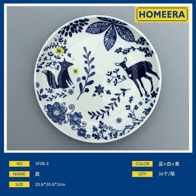 Ceramic Snack Plate 8 Inch - Blue and White Animal Design - 206x206x2cm - 307g