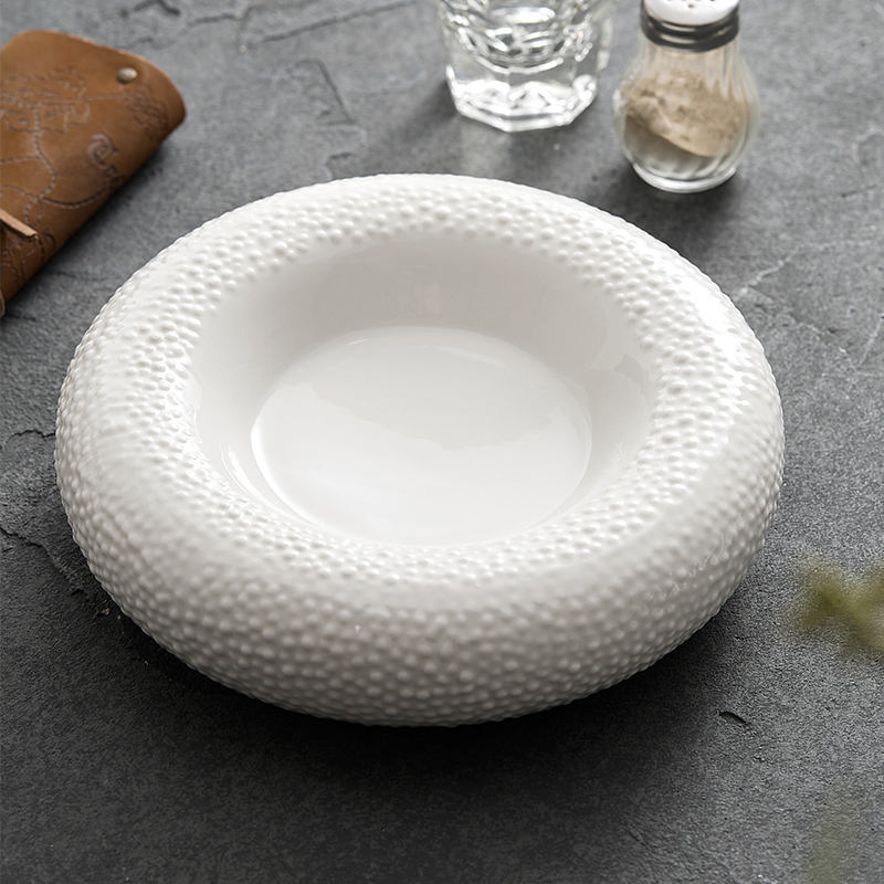 จานซุปเซรามิกจานกลมจานสำหรับอาหารเรียกน้ำย่อยสลัดของหวานซุปซุปมะขามป้อมที่ให้บริการบุฟเฟ่ต์ร้านอาหารเครื่องใช้บนโต๊ะอาหาร