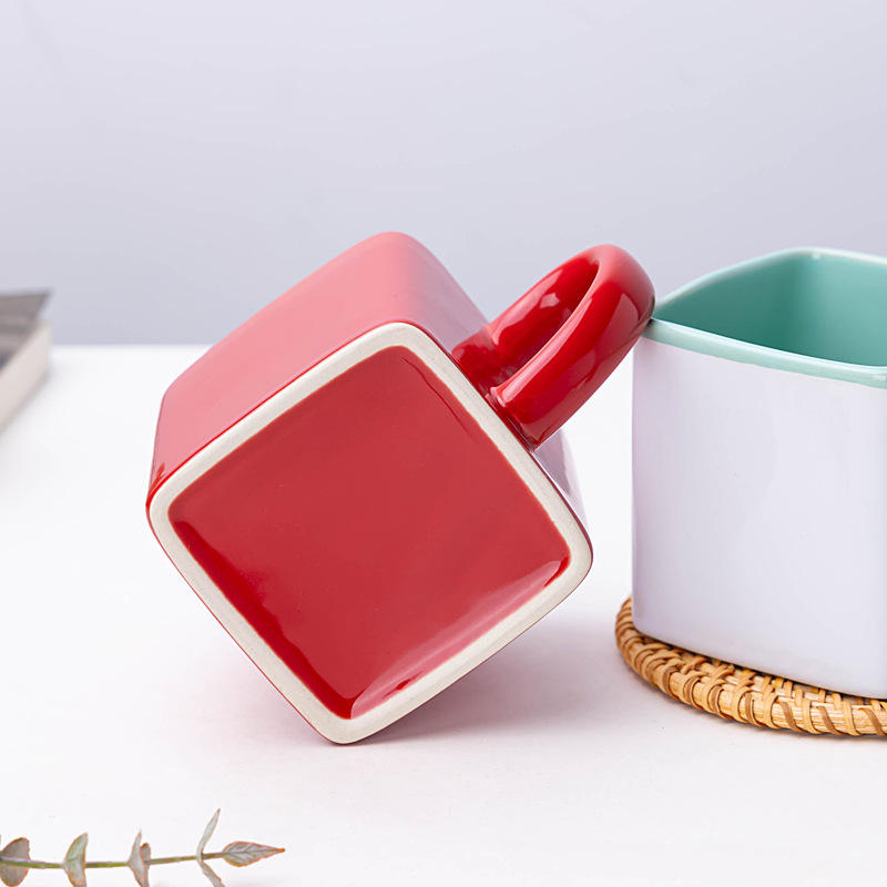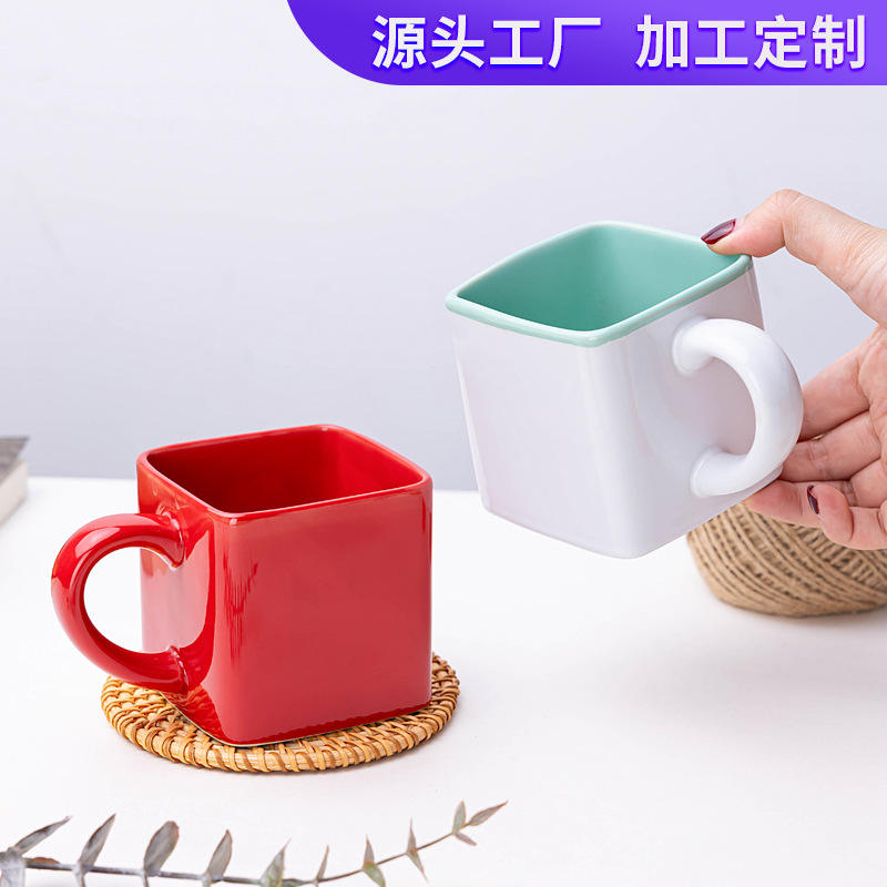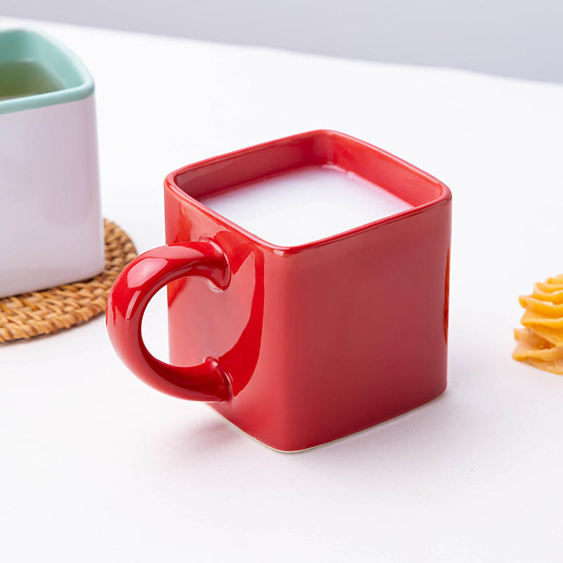 แก้วเซรามิคทรงสี่เหลี่ยม สีแดงล้วน สำหรับใส่นม กาแฟ ของขวัญ พร้อมพิมพ์ลายส่วนตัว