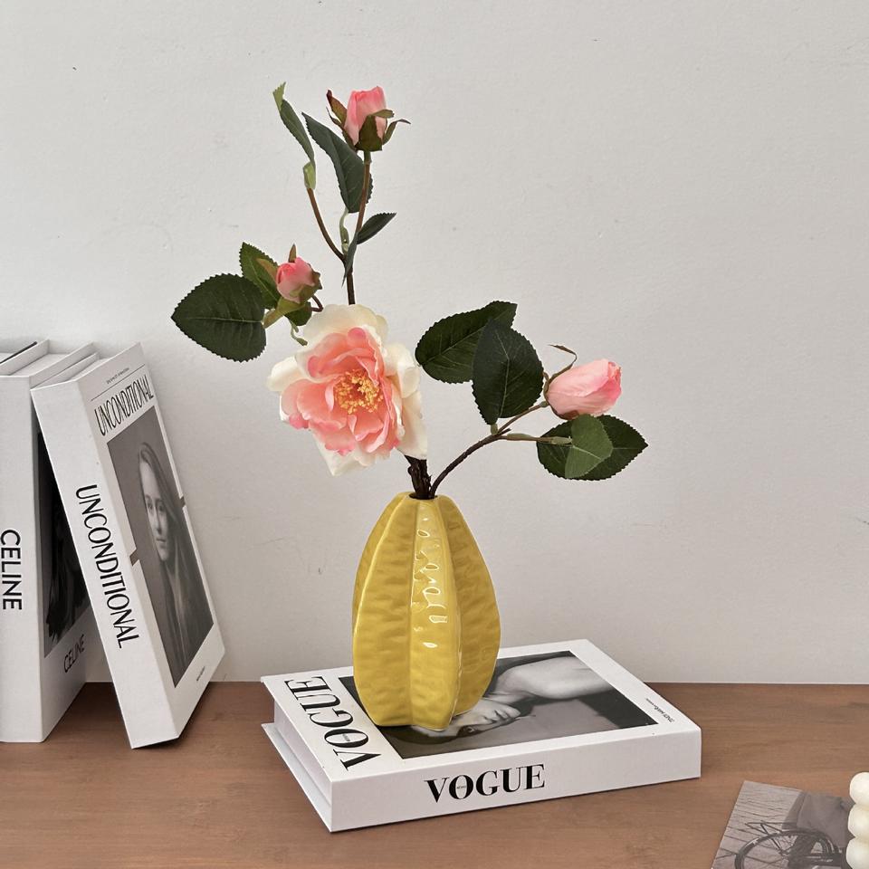 แจกันเซรามิกรูปดาวเหลือง แจกันรูปผลไม้สำหรับตกแต่งโต๊ะบ้าน สไตล์สแกนดิเนเวียน