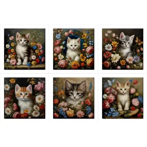 ชุดกระเบื้องเซรามิกสำหรับตกแต่งสถานรับเลี้ยงเด็กบ้าน6กระเบื้อง backsplash กับลูกแมวและภาพวาดดอกไม้