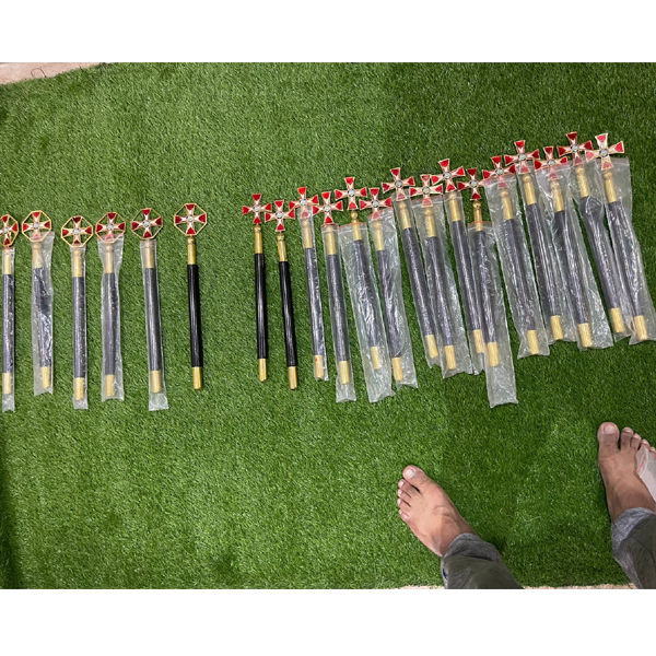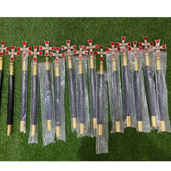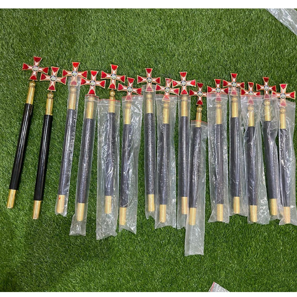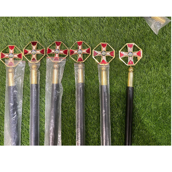 คทาคทาพร้อมหัวไขว้สีแดงสำหรับงานตามสั่งสำหรับใช้ในขบวนพาเหรดทางศาสนาและการก่อสร้าง