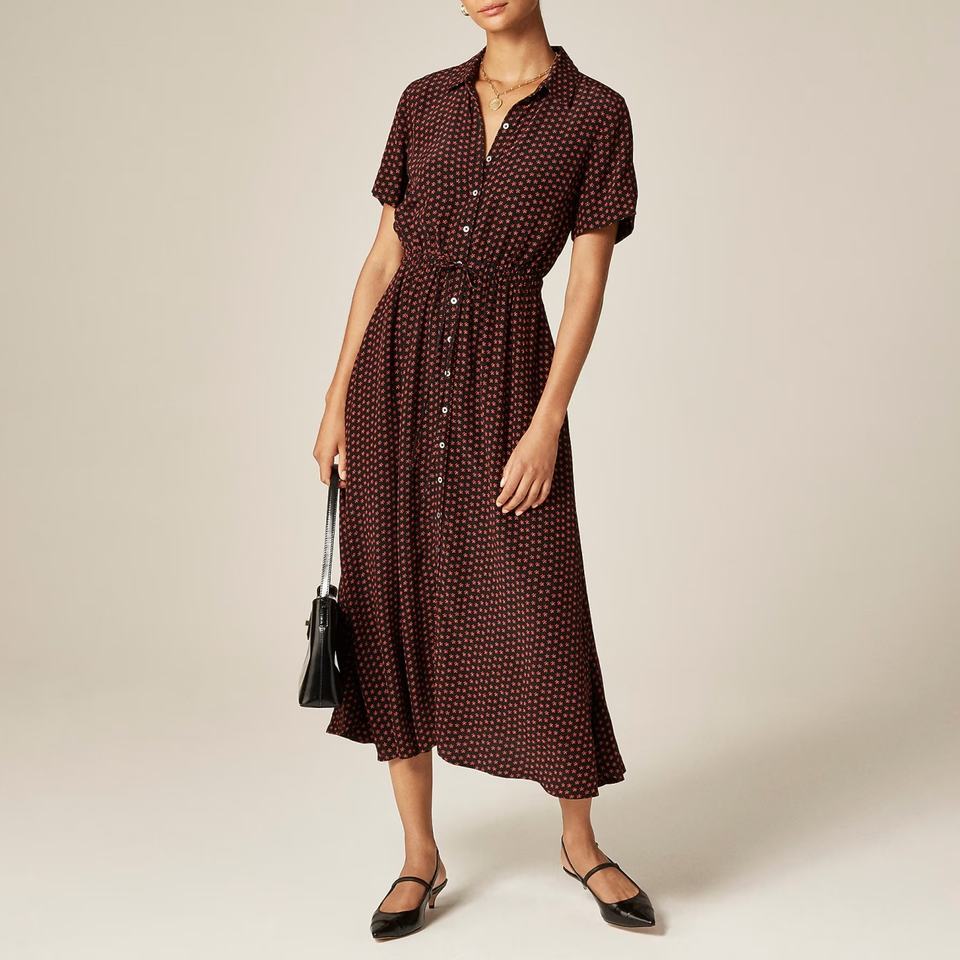 เดรสเชิ้ตมิดิลำลอง Cerise ผ้าเครปเดอชีนลายดอกไม้ แต่งลูกไม้ปัก ผ้าระบายอากาศ เอวทรงธรรมชาติ สไตล์ฤดูร้อน