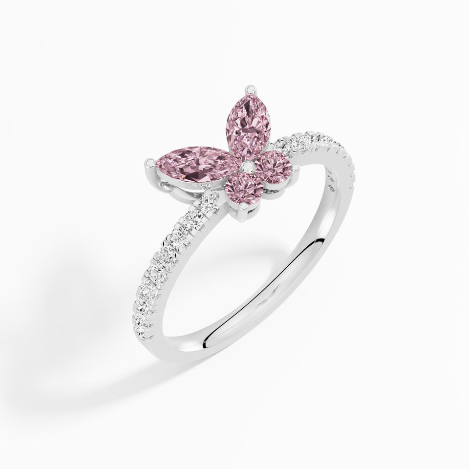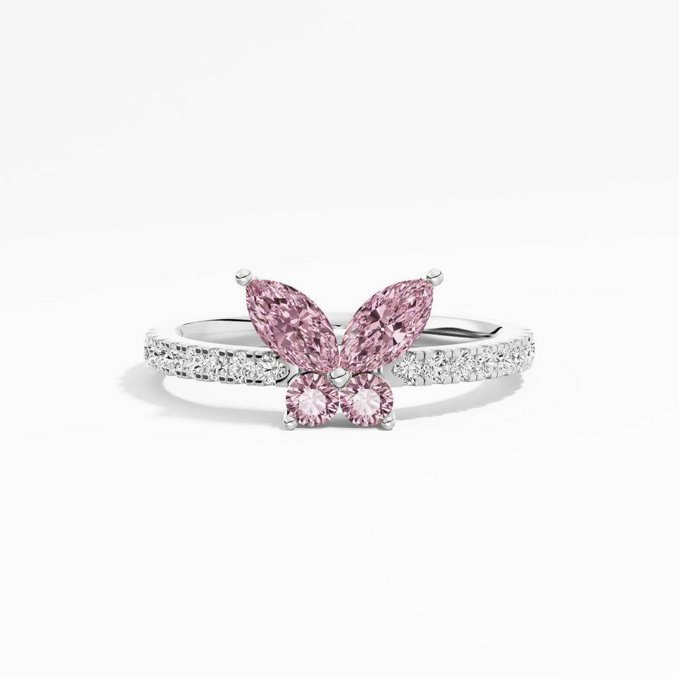 แหวนผีเสื้อประดับเพชรทรงมาร์คีส์สีชมพูและเพชรทรงกลม น้ำหนัก 0.74 กะรัต เพชรเพาะเลี้ยงในห้องปฏิบัติการ ทอง 14K/18K ชุบโรเดียม เครื่องประดับคุณภาพสูงสำหรับทุกเพศ