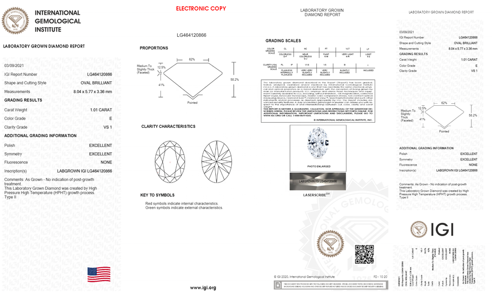 VS1IGI พลอยสังเคราะห์ทรงรีตัดสวยงาม8มม. ทรงรีขนาด1.01กะรัตอัญมณีหลวมผลิตจากห้องปฏิบัติการคุณภาพ5A