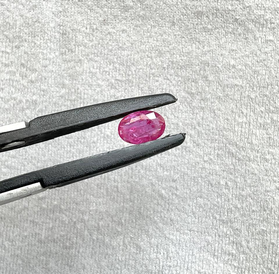 พลอยทับทิมโมซัมบิกสีชมพู 1.63 กะรัต รูปทรงวงรีเจียระไนแบบเหลี่ยม ไม่ผ่านการอบความร้อน คุณภาพสูง เปลี่ยนสีได้ เหมาะสำหรับทำเครื่องประดับ แท้จากธรรมชาติ