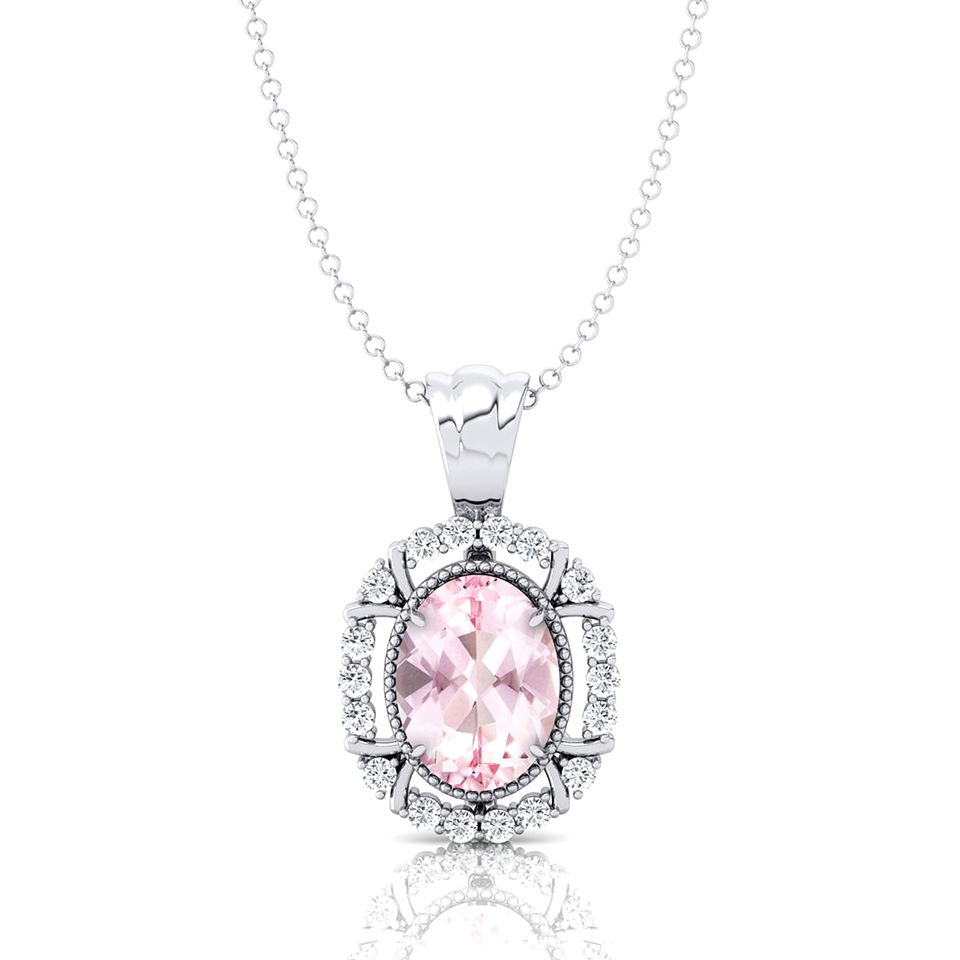 ได้รับการรับรอง18Kt จี้ทองคำแท้อัญมณีมอร์แกนไนต์เพชรแท้รัศมีโซลิแทร์ของขวัญวันวาเลนไทน์
