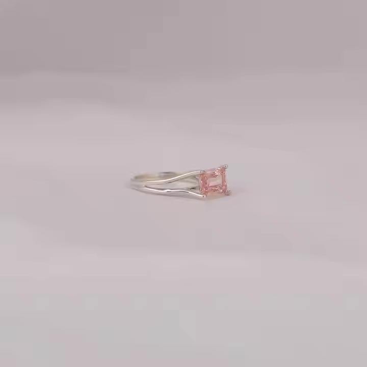 แหวนหมั้นเพชรที่ปลูกในห้องแล็บสีชมพูมรกตขนาด2.35กะรัตได้รับการรับรองการตั้งค่าโซลิแทร์สีทองแบบ14KT สำหรับเด็กผู้หญิง