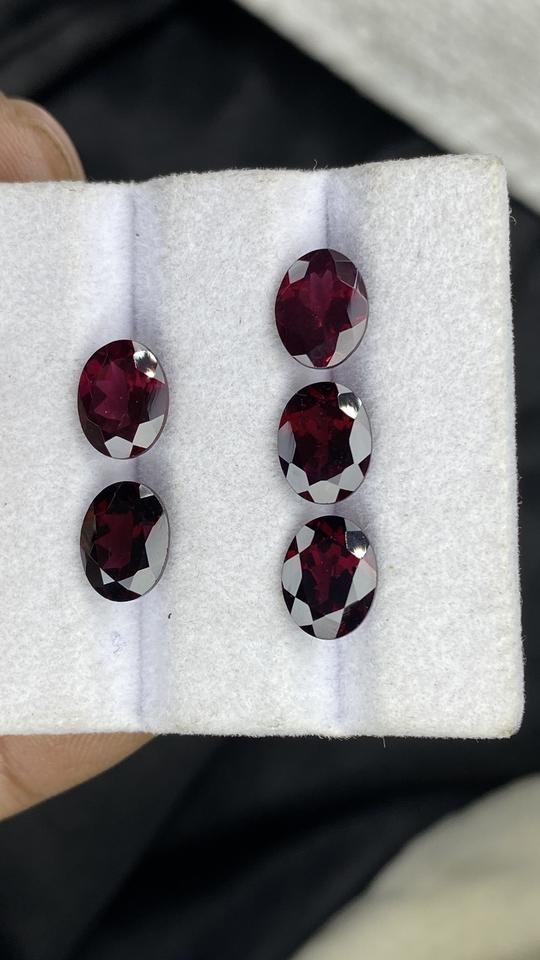 ชุดอัญมณีโรโดไลต์การ์เนตธรรมชาติทรงรีขนาด 9x7 มม. 5 เม็ด คุณภาพสีเยี่ยม น้ำหนัก 12.01 กะรัต ได้รับการรับรอง
